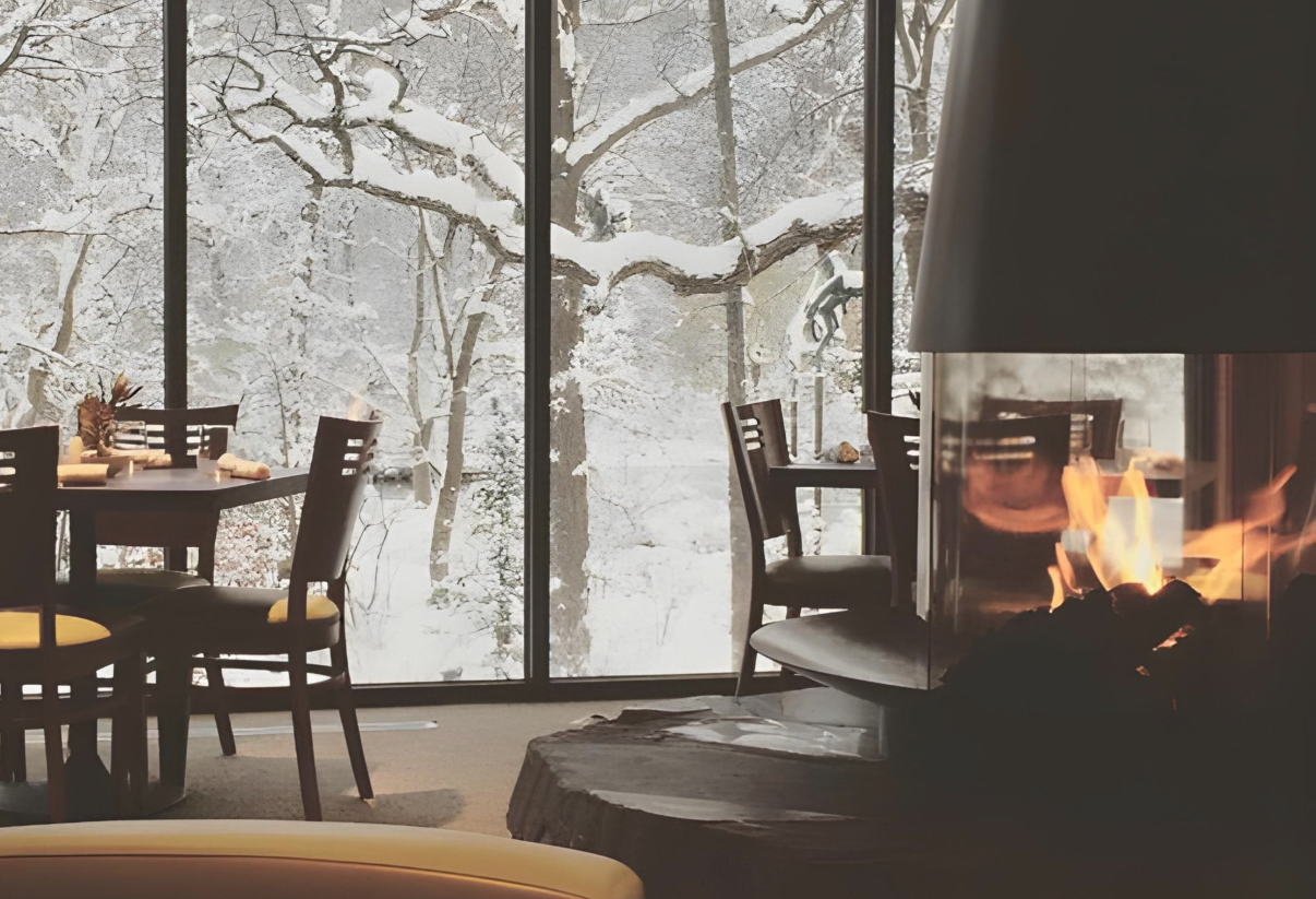 Enjoy a Meg's coffee while listening to music by the fireplace, overlooking the gardens.